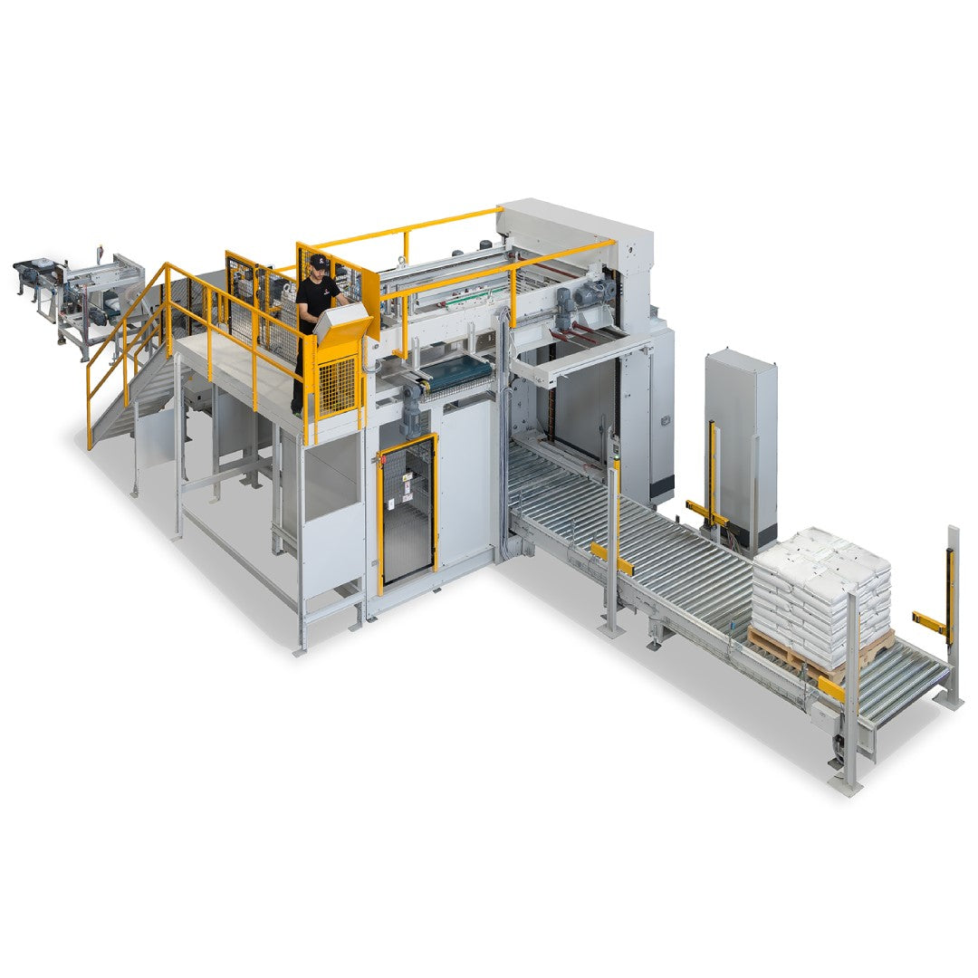 Meer informatieAutomatisch zakken stapelen op pallets met palletiseermachines volgens één of meerdere stapelpatronen.